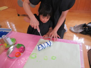 いろいろな色の模様ができて、とっても楽しそうでした。