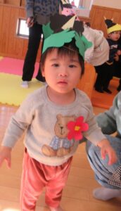 みんなの心の中には何の鬼がいる?とお話しすると、野菜嫌いな鬼!のんびり鬼!とどんな鬼を退治するかお話してくださいました。